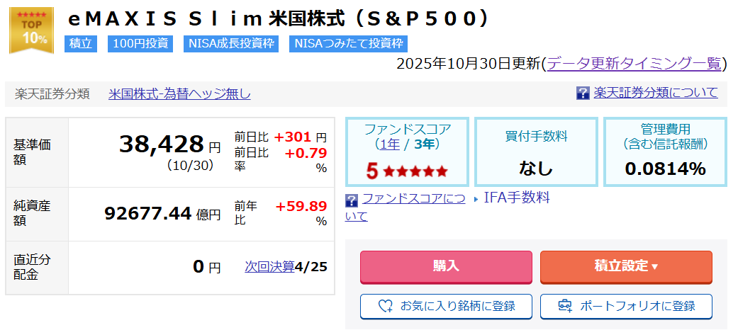 元々、低コストなであることに加えて、純資産総額に応じてさらに信託報酬が下がってくれるのは投資家としてはありがたい限りです。