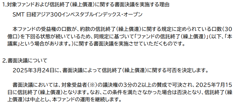 また投資信託の説明書にあたる目論見書には、繰上償還について下記のように書かれています。 (2025年2月11日 )